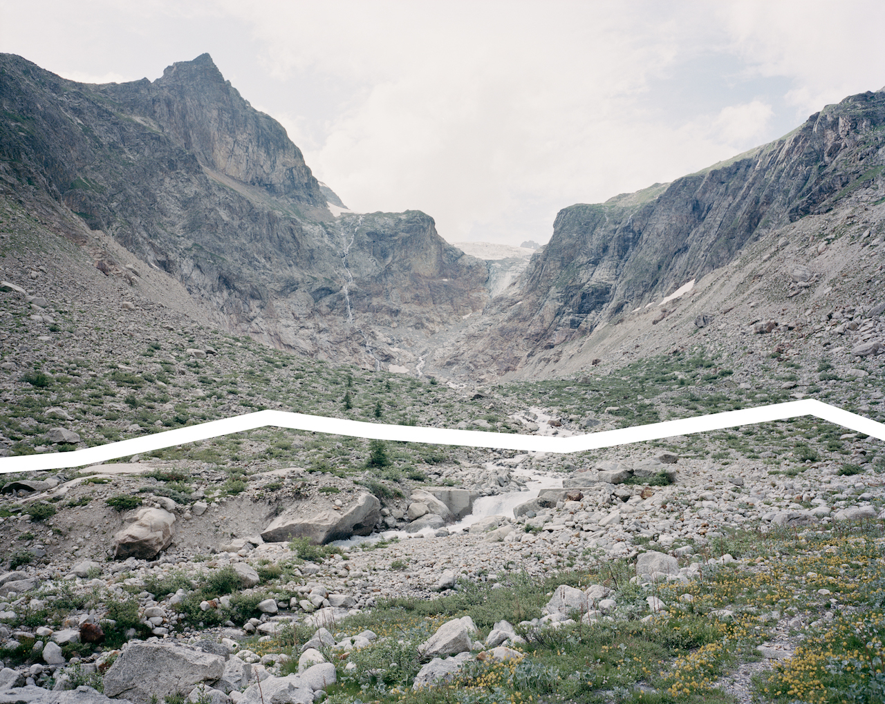 In his text for the homonymous book recently published by Quodlibet, critic Stefano Chiodi writes: “The Brenva glacier is a body that no longer exists. The photograph recalls it in the form of a lack. The sign traced in its emptiness—the blue inflatable or the white silhouettes—is a threshold: open not so much to what has been, but to what remains of our ability to remember, to bear witness, to feel.”