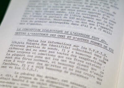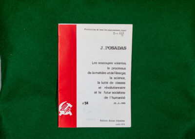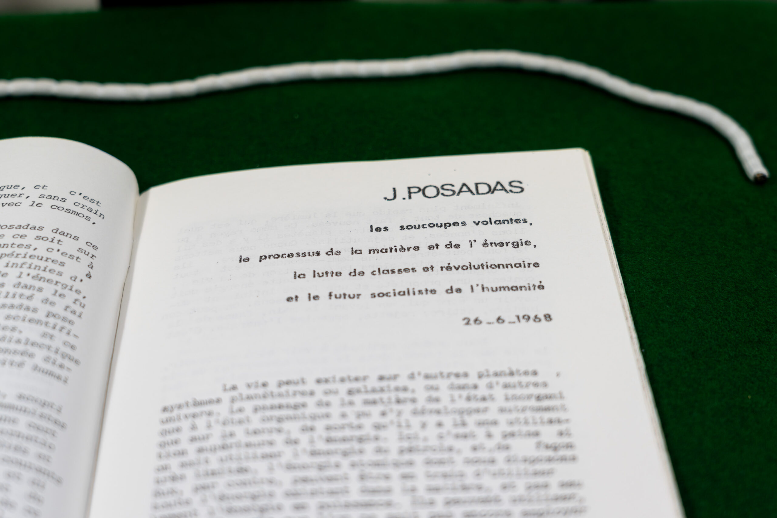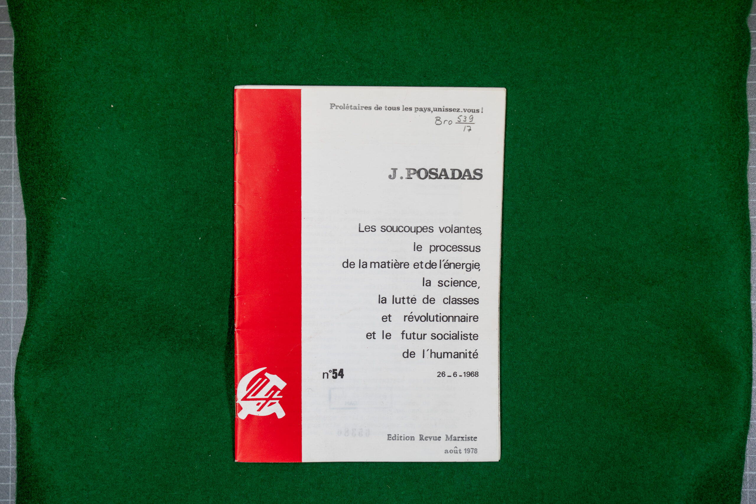 This project is not about nostalgia but about continuity: how forgotten radical dreams might still spark imagination in our present. It invites us to look back at a moment when politics reached for the stars, not to escape Earth, but to demand another way of living upon it. The text by J. Posadas that anchors this project is a speech delivered in 1968, later published in French by his own press. In it, Posadas affirmed that UFOs were not only real, but that the civilisations behind them must be communist. His argument rested on a speculative syllogism: if these beings had developed the extraordinary technical capacities required for interstellar travel, they must also have solved the social contradictions that on Earth produced inequality, violence, and exploitation.