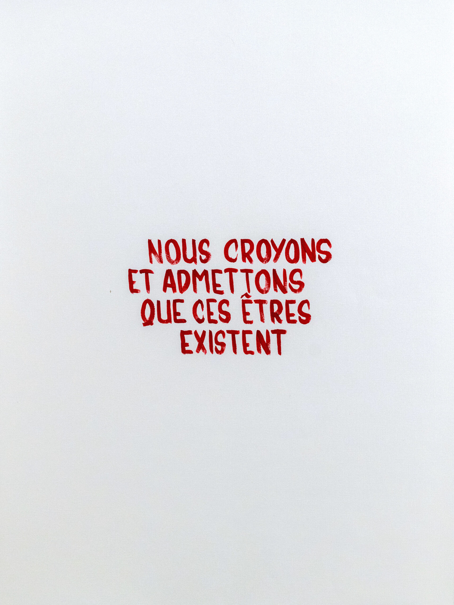 Axel Straschnoy, Nous Croyons et aceptons, 2025. Acrylic on paper, 76 x 56 cm, framed.